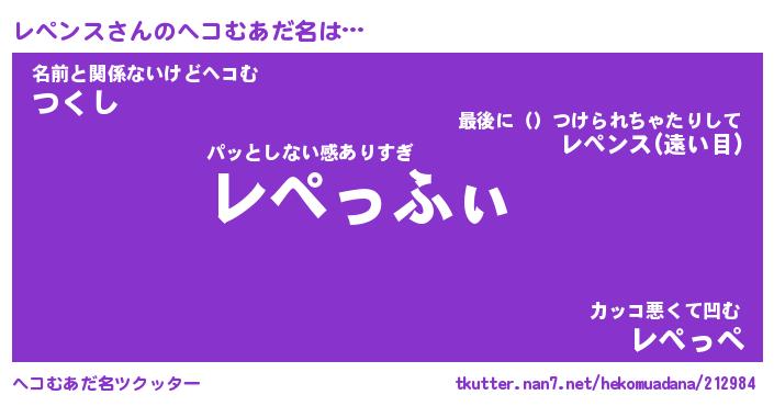 | 男性向けラノベタイトル風あだ名 | 『レペンスの憂鬱』 |