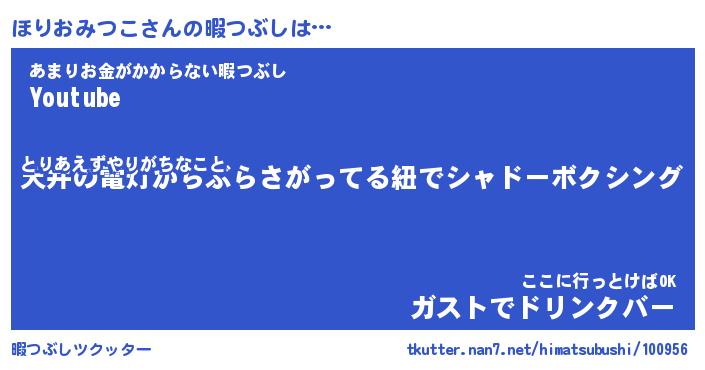 | ヘコむあだ名 | 『ほりっふぃ~』『牛乳』『ほりっ子』 |