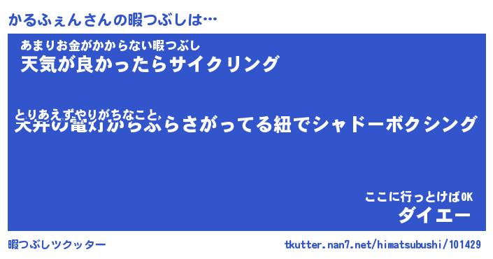 | 2回繰り返すあだ名 | 『かるかる』『かかるる』『ぬれぬれ』 |