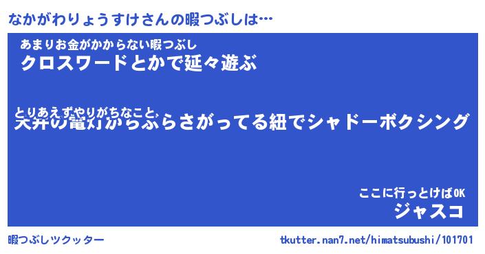 | ヒーロー風カッコイイあだ名 | 『スーパーナカガワリョウスケ』 |