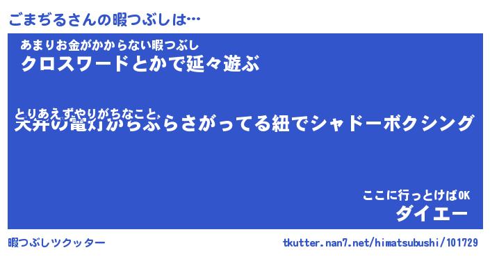 | 2回繰り返すあだ名 | 『ごまごま』『ごごまま』『ぬれぬれ』 |