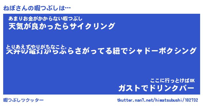 | 2回繰り返すあだ名 | 『ねぼねぼ』『ねねぼぼ』『ぬらぬら』 |