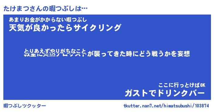 | ヒーロー風カッコイイあだ名 | 『スーパータケマツ』『炎刃騎士タケ』 |