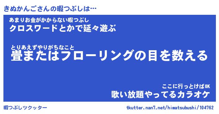 | 男性向けラノベタイトル風あだ名 | 『きぬかんごの憂鬱』 |