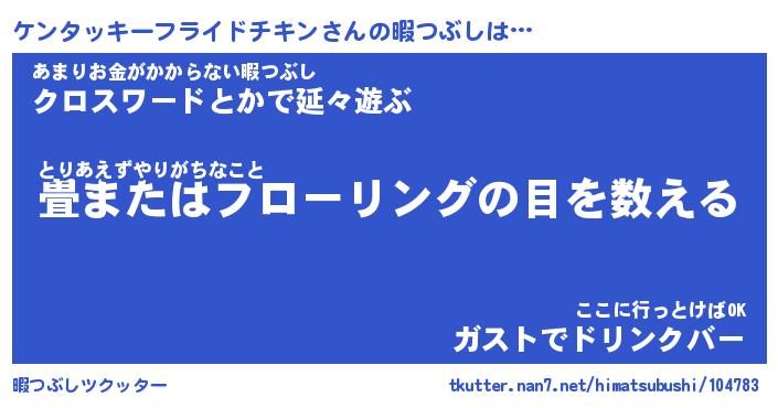 | 女子向けラノベタイトル風あだ名 | 『(仮)ケンタッキーフライドチキンのやんごとなき事情』 |