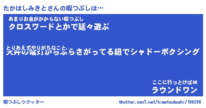 | 胡散臭い通販商品みたいなあだ名 | 『モテモテ間違いなし水晶球…その名も「たかはしみきと」』 |