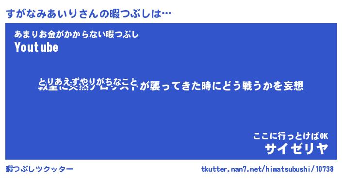 | 伝説のあだ名 | 『封印されし竜騎士すがなみあいり』 |