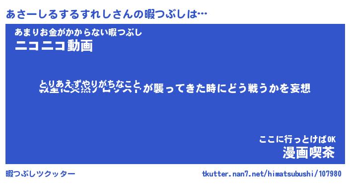 | 伝説のあだ名 | 『封印されしスナイパーあさーしるするすれし』 |