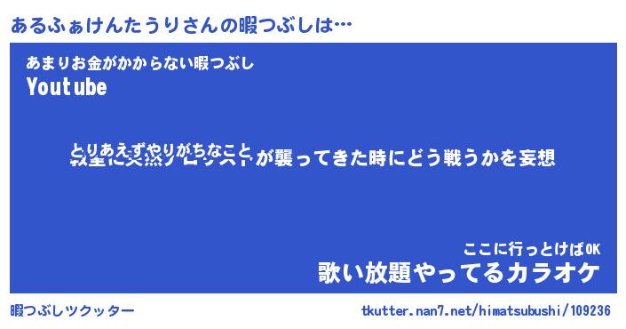 | 伝説のあだ名 | 『封印されしスナイパーあるふぁけんたうり』 |