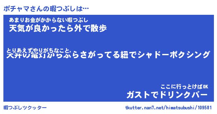 | ヘコむあだ名 | 『ポチもー』『なまこ酢』『ポチを』 |