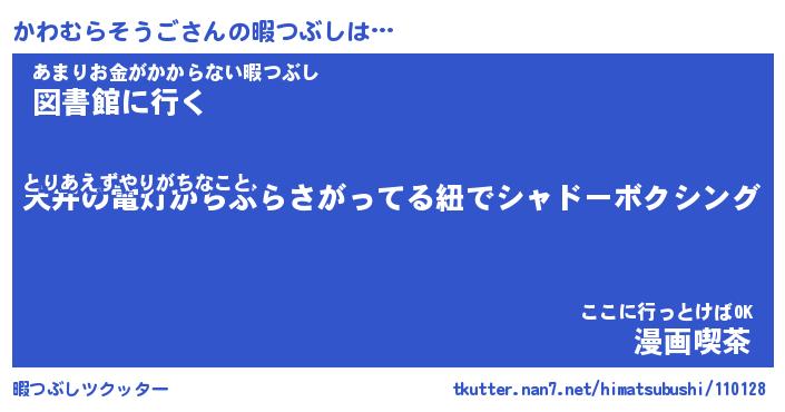 | 女子向けラノベタイトル風あだ名 | 『かわむらそうご姫と円卓の騎士』 |