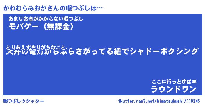 | ツイッター | かわむらみおかさんのツイッターID『katatsumuri_idle』 |