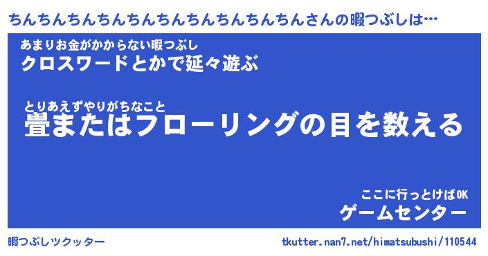 | 番長 | ちんちんちんちんちんちんちんちんちんちん、またの名を・・・!『まさかのちんちんちんちんちんちんちんちんちんちんちん』 |
