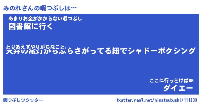 | 2回繰り返すあだ名 | 『みのみの』『みみのの』『ぬれぬれ』 |