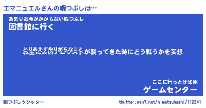 | 伝説のあだ名 | 『封印されし竜騎士エマニュエル』 |