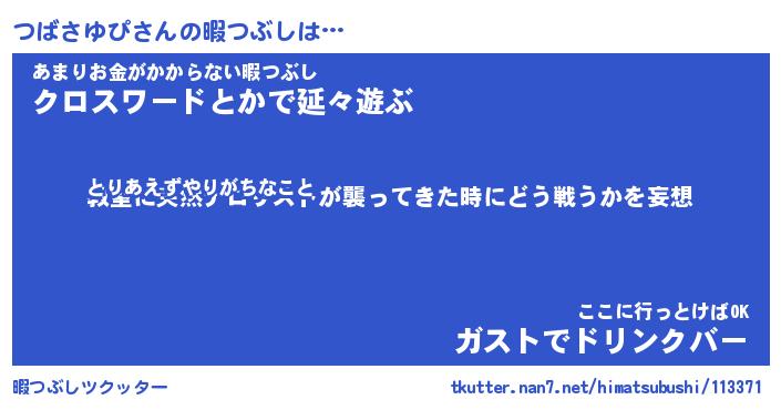 | ヒーロー風カッコイイあだ名 | 『スーパーツバサユピ』『幻影騎士ツバ』 |