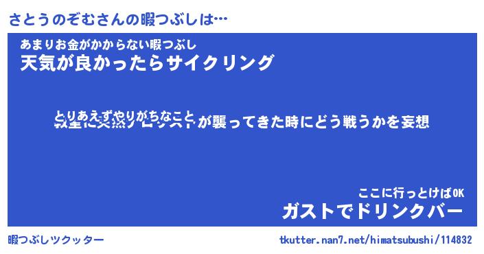| ヒーロー風カッコイイあだ名 | 『スーパーサトウノゾム』『炎刃騎士サト』 |
