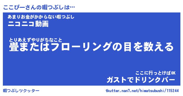 | ツイッター | ここぴーさんのツイッターID『konnyaku_nyan』 |