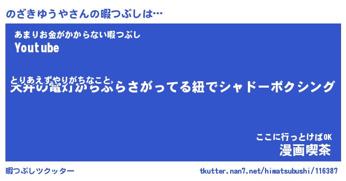 | ヒーロー風カッコイイあだ名 | 『スーパーノザキユウヤ』『天弓騎士ノザ』 |