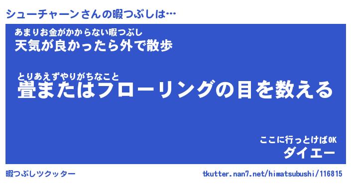 | 男性向けラノベタイトル風あだ名 | 『シューチャーンの憂鬱』 |