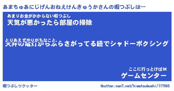 | 恥ずかしいあだ名 | 『プリティーあまちゅあにじげんおねえけんきゅうか』 |