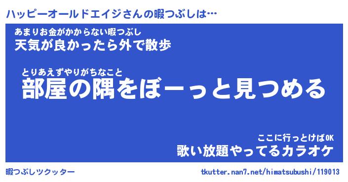 | 男性向けラノベタイトル風あだ名 | 『ハッピーオールドエイジの憂鬱』 |