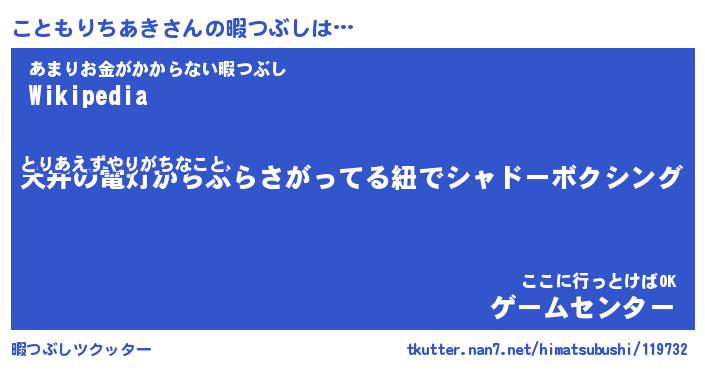 | 伝説のあだ名 | 『不死鳥のスナイパーこともりちあき』 |