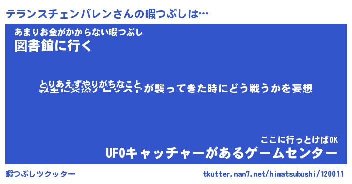 | 男性向けラノベタイトル風あだ名 | 『テランスチェンバレンアートオンライン』 |