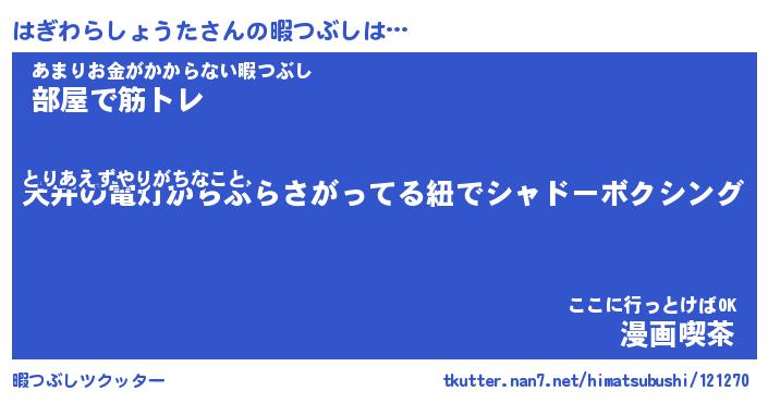 | 伝説のあだ名 | 『封印されしスナイパーはぎわらしょうた』 |