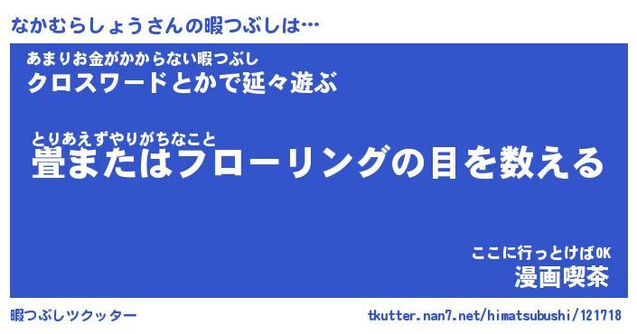 | 男性向けラノベタイトル風あだ名 | 『なかむらしょうの憂鬱』 |