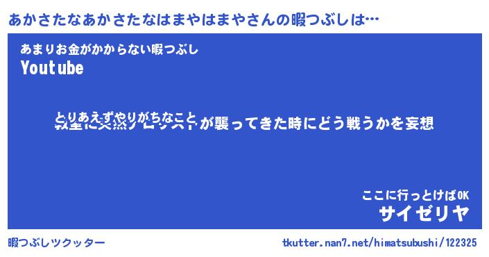 | 伝説のあだ名 | 『封印されしスナイパーあかさたなあかさたなはまやはまや』 |