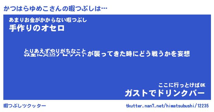| 伝説のあだ名 | 『封印されしスナイパーかつはらゆめこ』 |