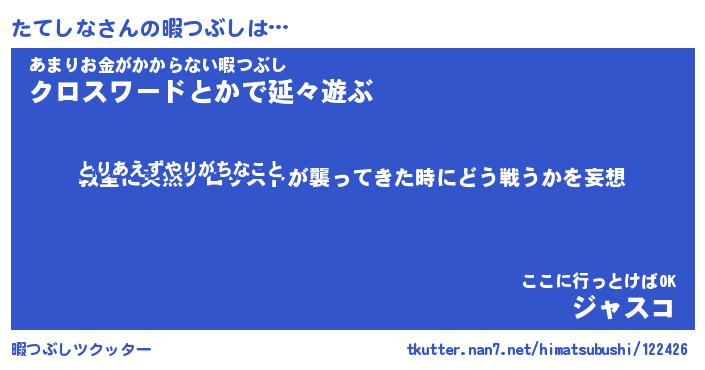 | ヒーロー風カッコイイあだ名 | 『スーパータテシナ』『暗黒騎士タテ』 |