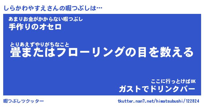 | 肩書あだ名 | 『しらかわやすえ店長』 |