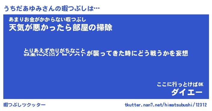 | 肩書あだ名 | 『うちだあゆみCEO』『うちだあゆみ班長』 |