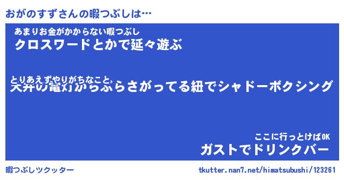 | ツイッター | おがのすずさんのツイッターID『namakemono_kun』 |