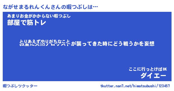| 胡散臭い通販商品みたいなあだ名 | 『億万長者になれるブレスレット…その名も「ながせまるれんくん」』 |