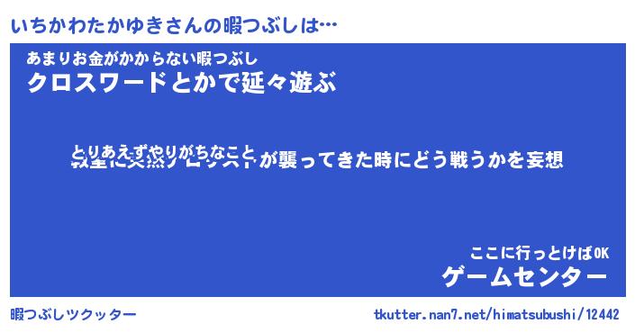 | 伝説のあだ名 | 『封印されし傭兵いちかわたかゆき』 |