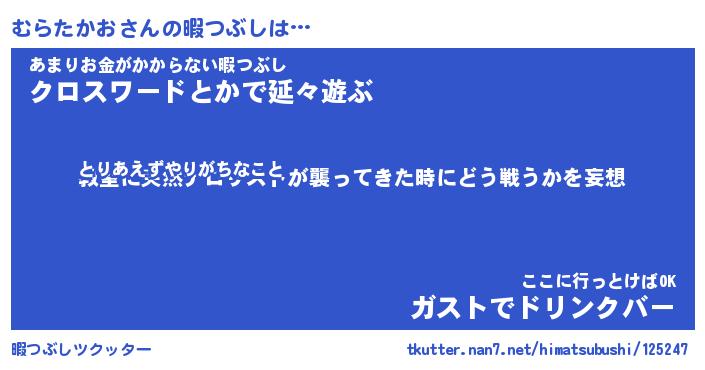 | ヒーロー風カッコイイあだ名 | 『スーパームラタカオ』『幻影騎士ムラ』 |