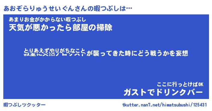 | ヒーロー風カッコイイあだ名 | 『スーパーアオゾラリュウセイグン』 |