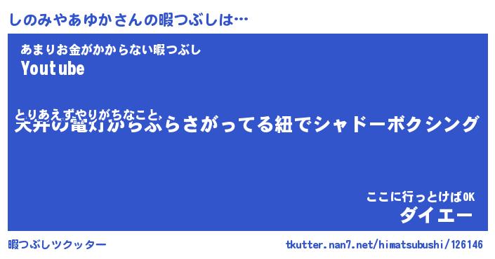 | 恥ずかしいあだ名 | 『プリティーしのみやあゆか』『しのちん』 |