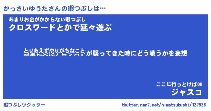 | 男性向けラノベタイトル風あだ名 | 『カッサイユウタアートオンライン』 |
