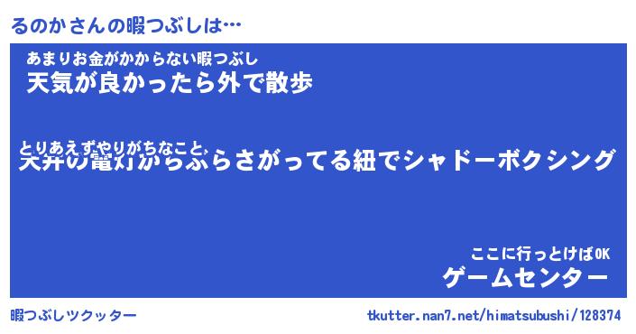 | ヘコむあだ名 | 『るのもー』『なまこ酢』『るのっぺ』 |