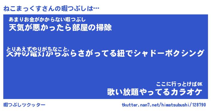 | ヘコむあだ名 | 『ねこにゅー』『酢こんぶ』 |