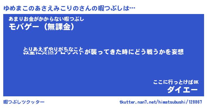 | 胡散臭い通販商品みたいなあだ名 | 『億万長者になれるブレスレット…その名も「ゆめまこのあさえみこりの」』 |