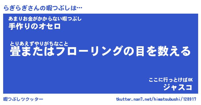 | ヘコむあだ名 | 『らぎっふぃ~』『つくし』『らぎお』 |