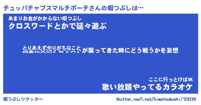 | ツイッター | チュッパチャプスマルチポーチさんのツイッターID『namakemono_star』 |