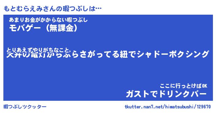 | ヒーロー風カッコイイあだ名 | 『スーパーモトムラエミ』『幻影騎士モト』 |