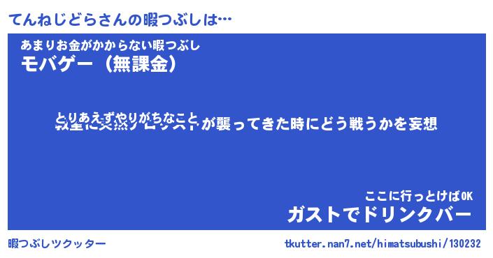 | ヒーロー風カッコイイあだ名 | 『スーパーテンネジドラ』『炎刃騎士テン』 |