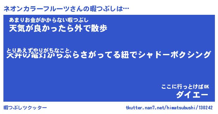 | 胡散臭い通販商品みたいなあだ名 | 『モテモテ間違いなし霊験あらたかなお札…その名も「ネオンカラーフルーツ」』 |